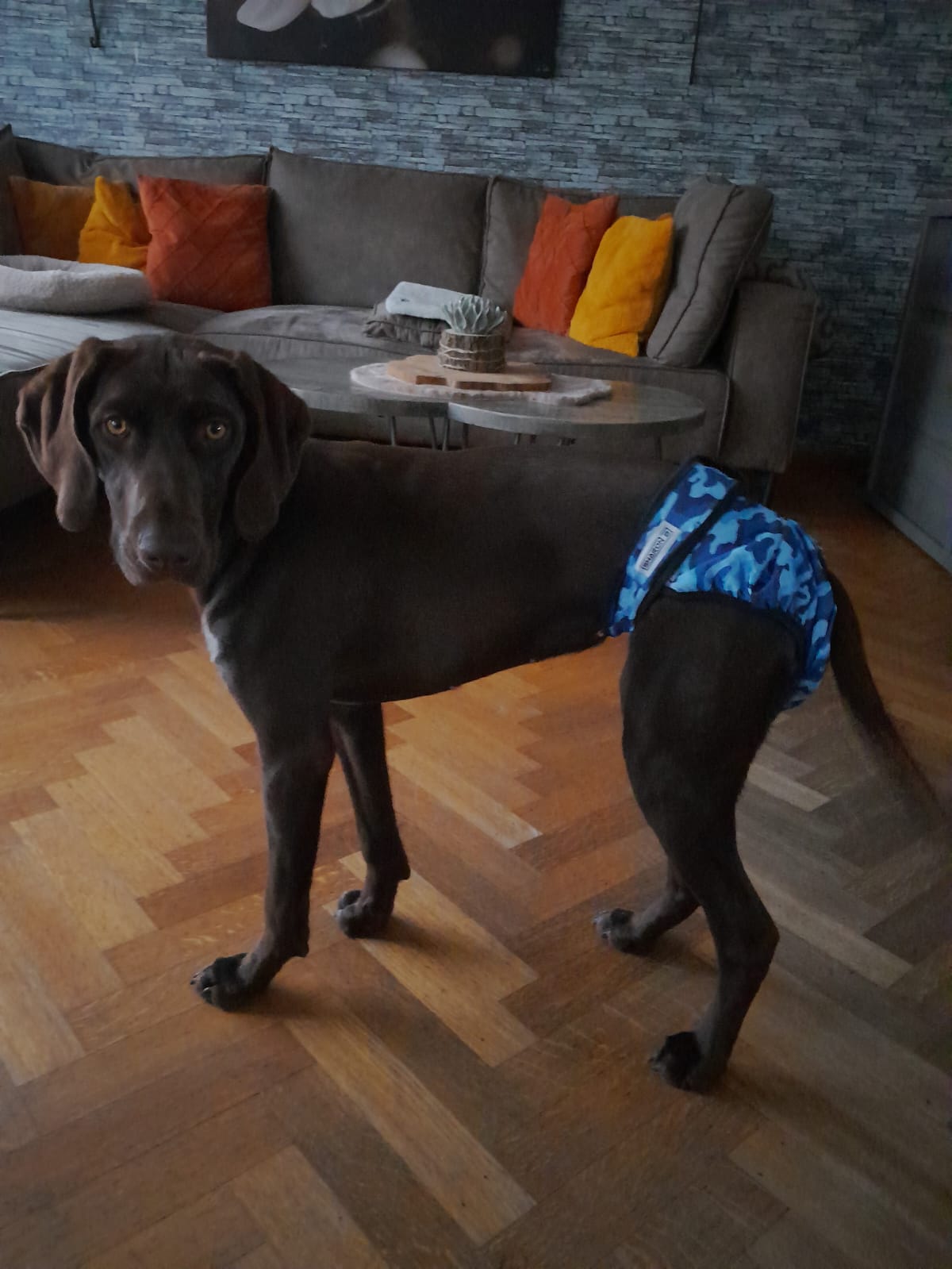 - Hygiëne: Verschoon het loopsheidbroekje regelmatig om de huid van je hond schoon en droog te houden.