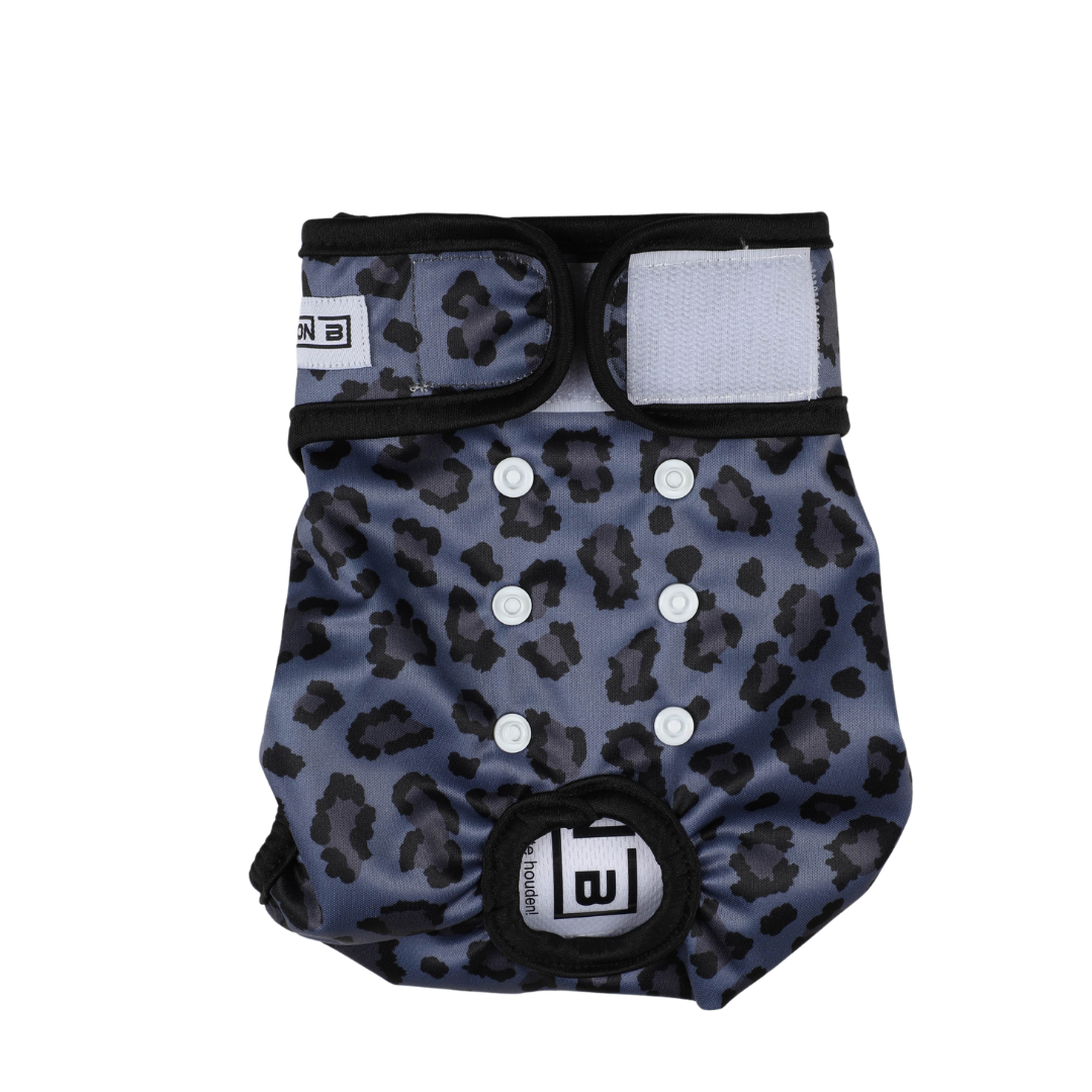 Dit grijze loopsheidbroekje met luipaardprint combineert een stijlvolle uitstraling met maximale bescherming. Speciaal ontwikkeld voor teefjes tijdens de loopsheid, bij incontinentie of na een operatie. De 6 absorberende lagen nemen vocht direct op, terwijl de elastische anti-lekranden en waterproof buitenlaag doorlekken voorkomen. Dankzij de drukknopen is het broekje eenvoudig verstelbaar in lengte en breedte, zodat het altijd goed aansluit en comfortabel blijft. Machinewasbaar op 40 °C en geschikt voor rassen van Jack Russell tot Golden Retriever.
