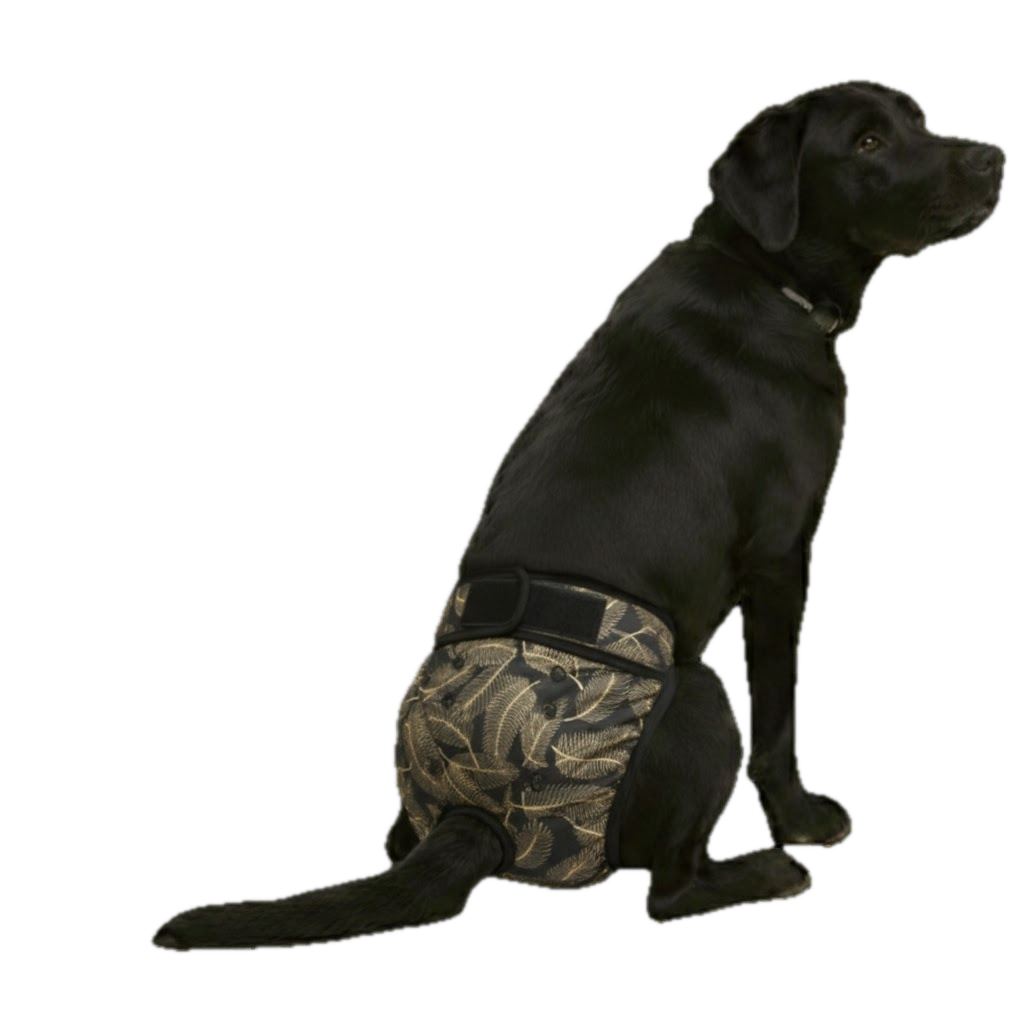 Dit zwarte loopsheidbroekje met gouden palmprint geeft je hond een luxe uitstraling én de bescherming die nodig is tijdens loopsheid, bij incontinentie of herstel na een operatie. Met 6 absorberende lagen, elastische anti-lekranden en een waterproof buitenlaag blijft je huis schoon en je hond comfortabel. Dankzij de drukknopen verstelbaar in lengte en breedte, herbruikbaar en eenvoudig machinewasbaar op 40 °C. Geschikt van kleine rassen zoals Shih Tzu tot grotere honden zoals Labrador en Berner Sennen.