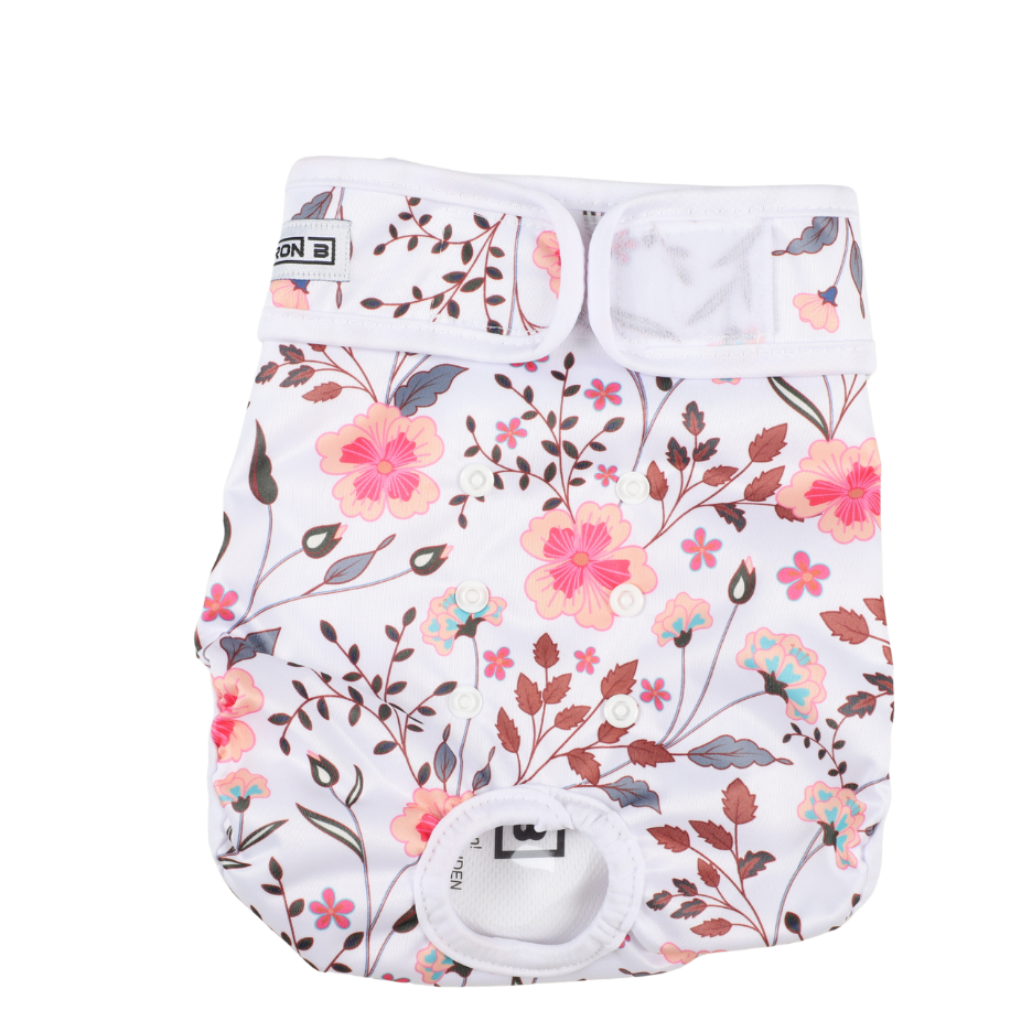Het roze bloem loopsheidbroekje combineert een zachte uitstraling met betrouwbare bescherming. Ontwikkeld voor teefjes tijdens de loopsheid, bij incontinentie of na een operatie. Uitgerust met 6 absorberende lagen die vocht direct opnemen, elastische anti-lekranden en een waterproof buitenlaag om doorlekken te voorkomen. Dankzij de drukknopen verstelbaar in lengte en breedte voor een perfecte pasvorm. Herbruikbaar, machinewasbaar op 40 °C en geschikt voor rassen zoals Maltezer, Shih Tzu, Beagle, Border Collie, Labrador Retriever en Rottweiler.