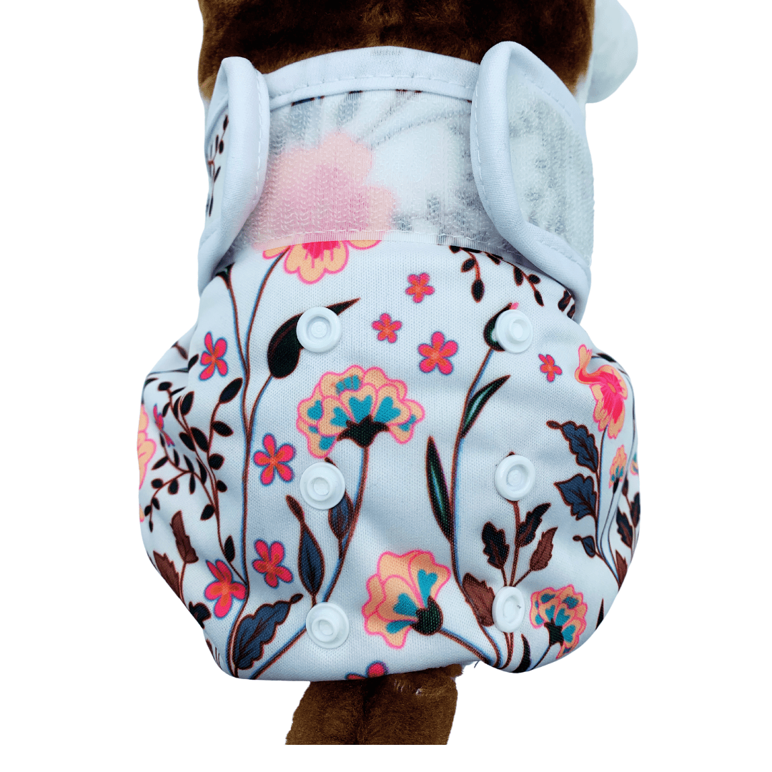 Loopsheidbroekje Roze Bloem – Wasbaar & verstelbaar voor teefjes bij loopsheid en incontinentie