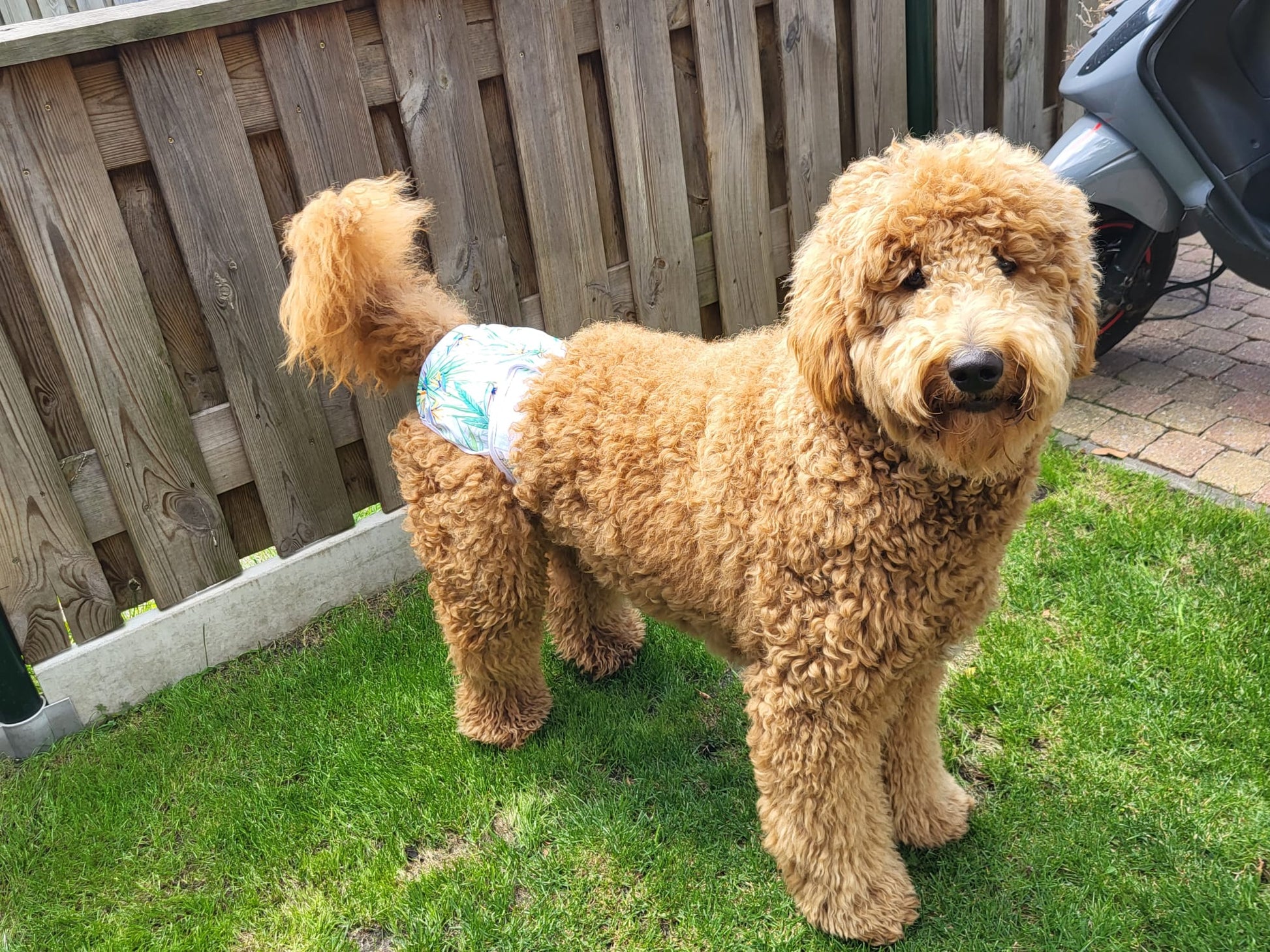 • Hygiëne: Verschoon het loopsheidbroekje regelmatig om de huid van je hond schoon en droog te houden.