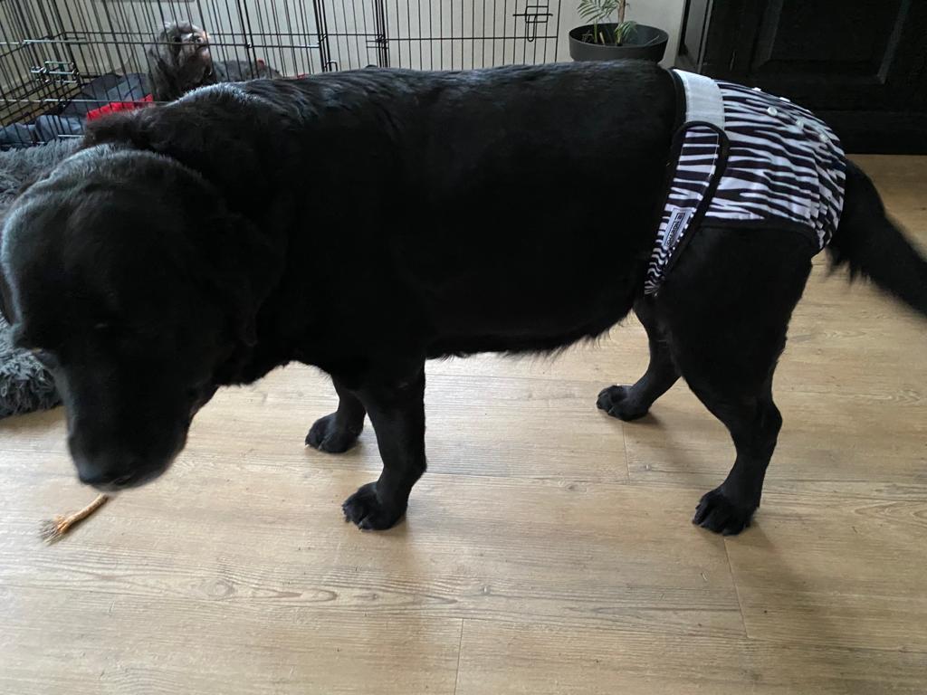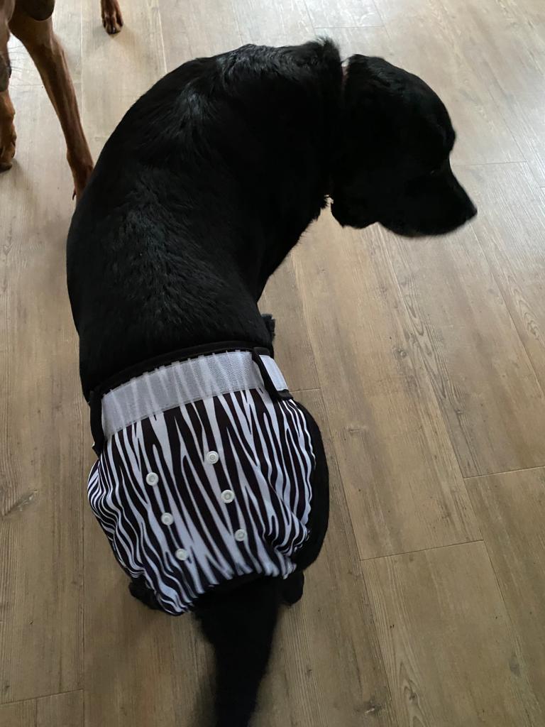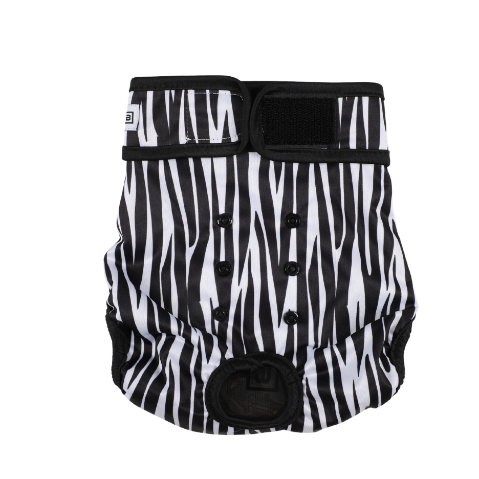 Loopsheidbroekje Zebra – Wasbaar & verstelbaar voor teefjes bij loopsheid en incontinentie